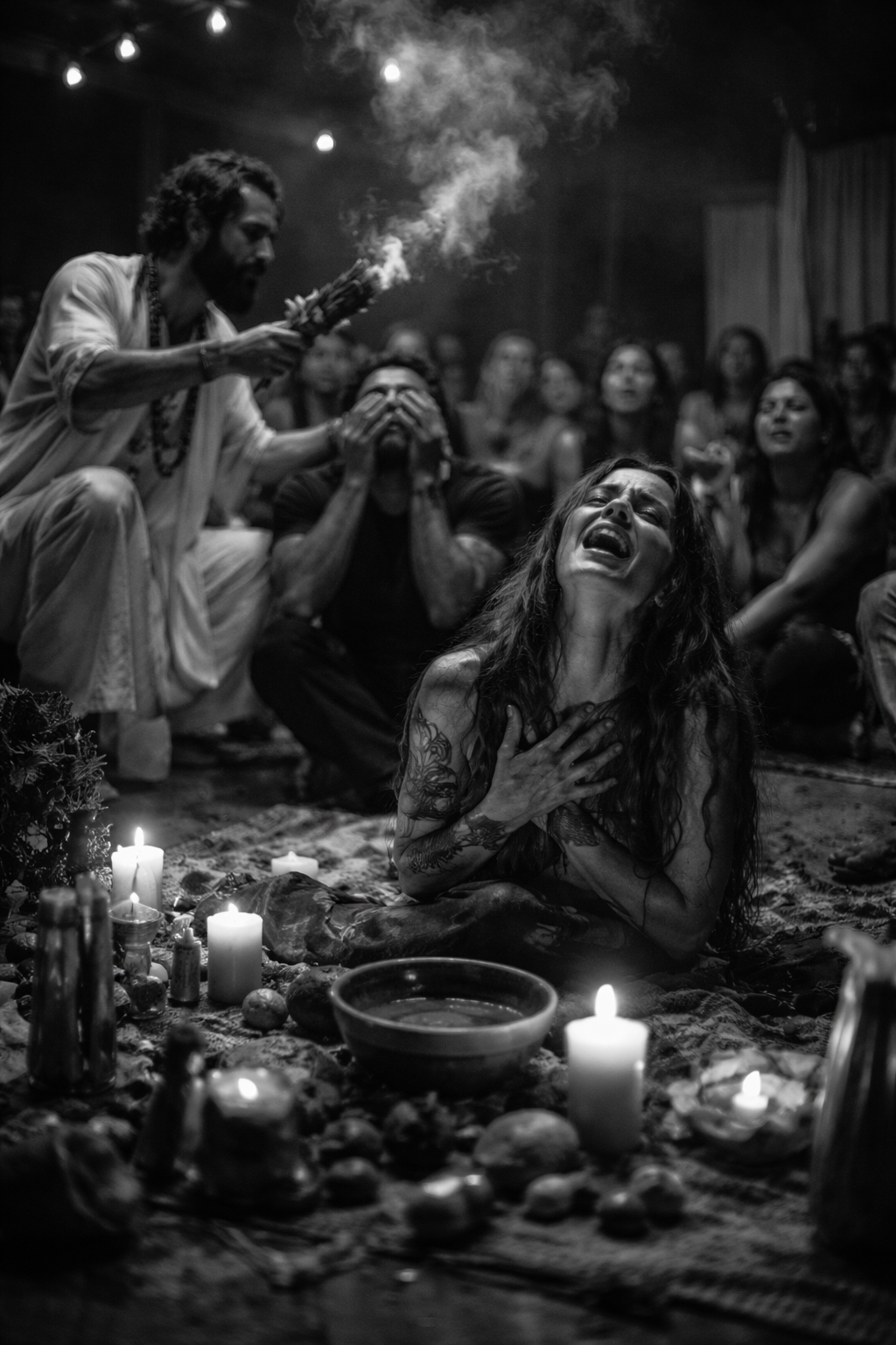 Denn Intensität sieht aus wie Tiefe. Tränen sehen aus wie Wahrheit. Zusammenbruch wirkt wie Durchbruch. Und in Gruppen, besonders in „Zeremonie-Atmosphäre“, verstärkt sich das noch.
